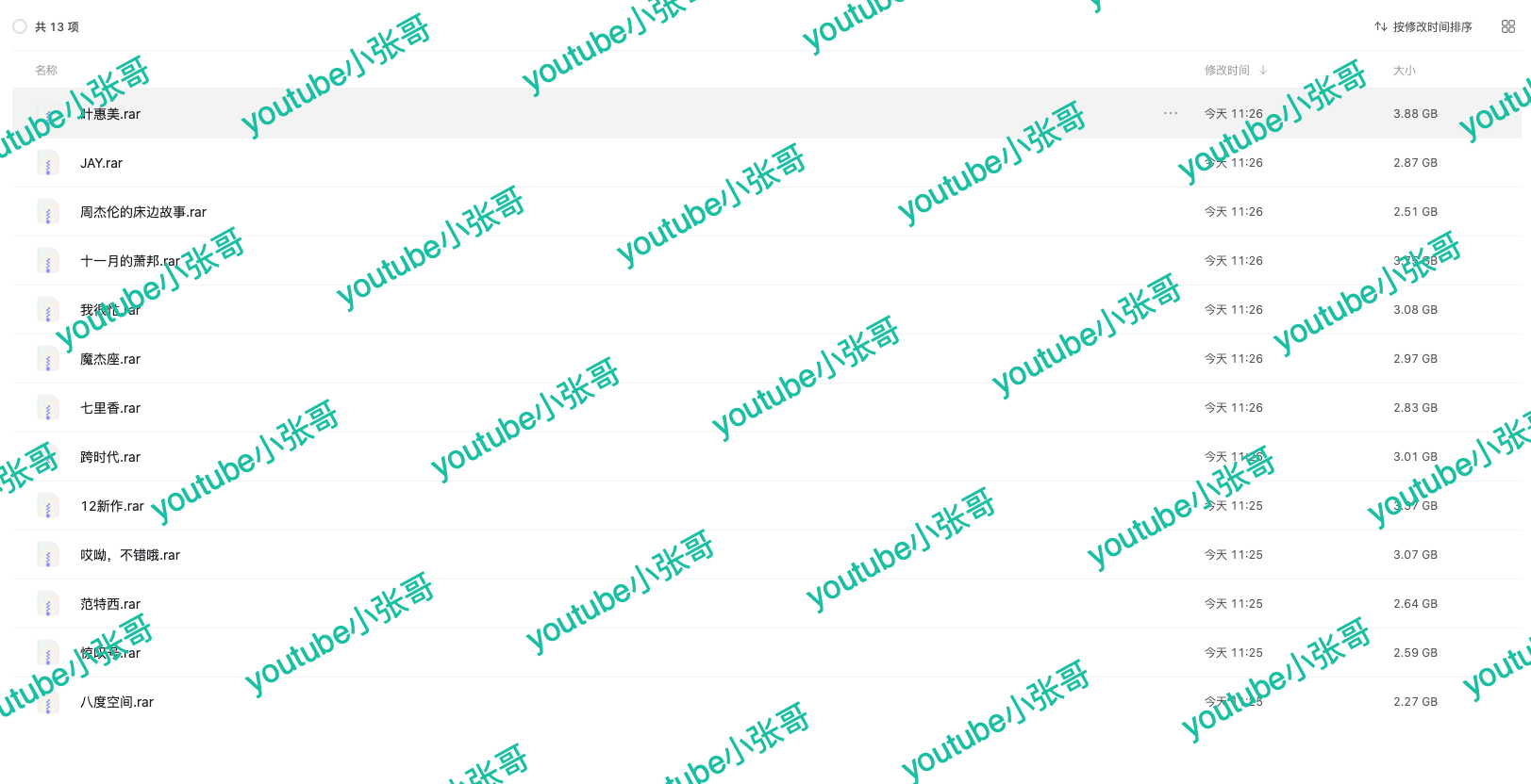 由于阿里云云盘针对jay chou的歌曲做了限制,无法进行分享部分歌曲(比如叶惠美),所以我这里把所有的曲子进行打为单独一个压缩包(jay-chou-all-music.zip,压缩包解压密码为xiaozhanggeyyds),各位伙伴可以单独下载完整所有曲目文件即可。jay chou高清无损音质文件下载